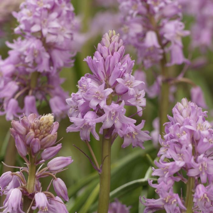 Hyacinthoides hispanica 'Pink', commonly known as Spanish Bluebells, reaches 10 to 12 inches tall, featuring soft pink, bell-shaped blooms that hang gracefully from slender stems. These fragrant flowers create a delicate woodland effect, naturalizing easily to form lush drifts over time.