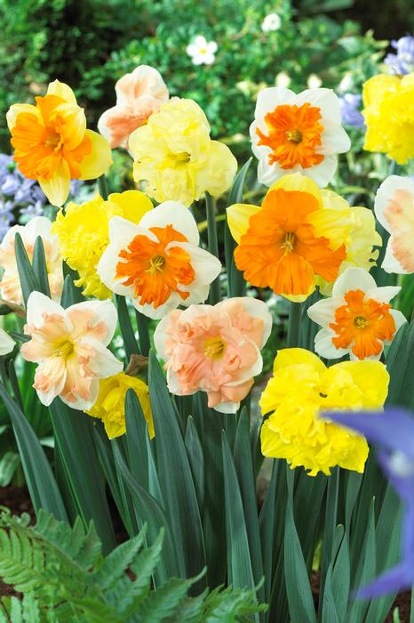 Butterfly Mix Daffodils, also known as Split-Corona Daffodils, feature ruffled, open-faced blooms that resemble butterfly wings. This mix includes white, yellow, orange, peach, and pink varieties, creating a dynamic spring display. The flowers bloom in mid-to-late spring, adding texture and movement to garden beds. Thriving in full sun to part shade, Butterfly Mix Daffodils prefer well-drained soil and are deer-resistant, rabbit-resistant, and drought-tolerant.