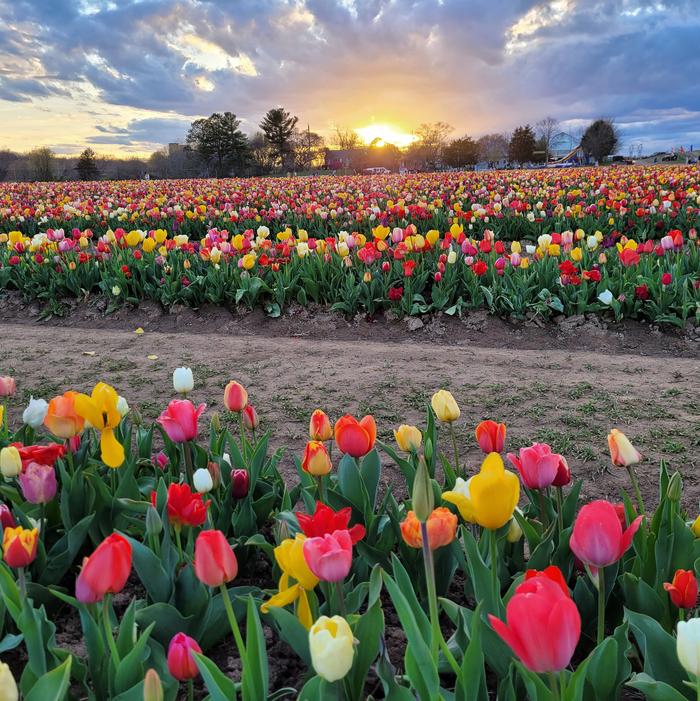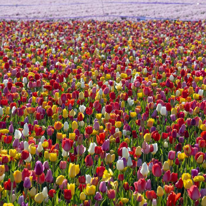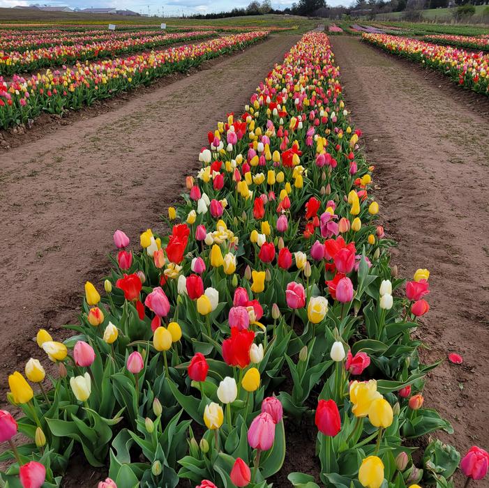 Tulip All Season Barn Mix is the flagship product of Ruigrok Flowerbulbs, designed for U-Pick tulip festivals and large-scale plantings. Each fall, millions of bulbs are planted, drawing from hundreds of varieties, ensuring a completely unique display every season. This mix is ideal for mass plantings, offering an extended bloom period that keeps fields vibrant for weeks.