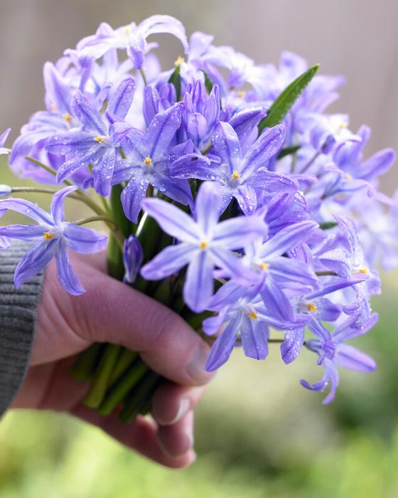 Chionodoxa luciliae, commonly known as Glory of the Snow, reaches 4 to 6 inches tall, featuring star-shaped, lilac-blue flowers with a small white center. These early spring perennials thrive in full sun to part shade, preferring well-drained soil.